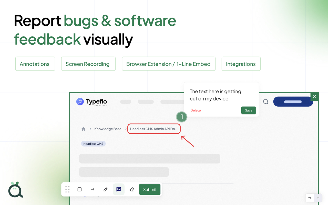 ReportaBug works with all websites, web applications and SPAs. Everything you need is all within your browser, no external tools or image editor software required.