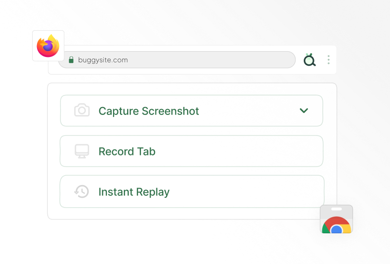 Report bugs instantly from any page with our lightweight extensions for Chrome, Firefox & Edge — no switching tabs or opening dashboards.